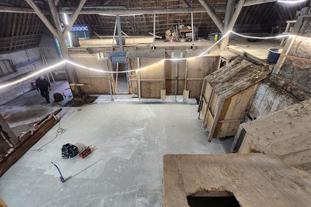 Met veel plezier delen wij een mooie mijlpaal binnen de restauratie van Boerderij Buitenrust in Westerblokker. Na een intensieve voorbereidings- en uitwerkingsfase zijn alle palen succesvol geslagen en is inmiddels ook de nieuwe betonvloer gestort, een grote stap in het herstellen en toekomstbestendig maken van deze rijksmonumentale stolpboerderij.